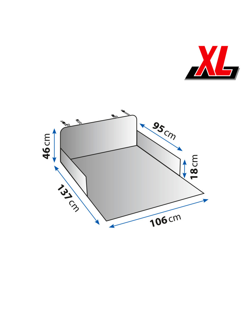 - Ochrona tapicerki – Boczne ściany pokrowca są wysokie, dzięki czemu chroniona jest duża część bagażnika a ponadto pasuje on nawet do wnętrza dużego samochodu. Wszyte od wewnętrznej strony rzepy bardzo dobrze przyczepiają się do materiału tapicerskiego, jakim wyścielone jest wnętrze pojazdu.