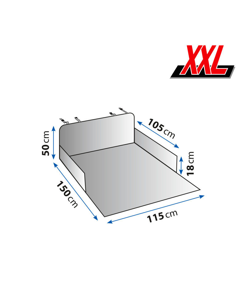 - Ochrona tapicerki – Boczne ściany pokrowca są wysokie, dzięki czemu chroniona jest duża część bagażnika a ponadto pasuje on nawet do wnętrza dużego samochodu. Wszyte od wewnętrznej strony rzepy bardzo dobrze przyczepiają się do materiału tapicerskiego, jakim wyścielone jest wnętrze pojazdu.