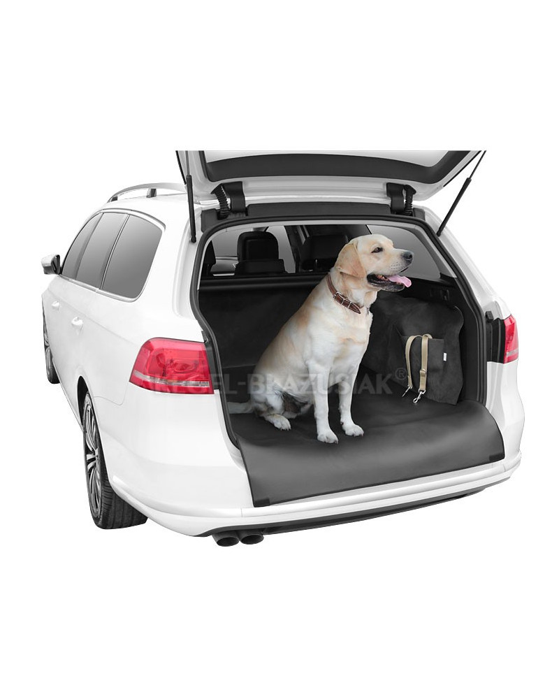 - Bezpieczeństwo i wygoda- Z jednej strony pokrowca, wyścielającego podłoże bagażnika jest rozcięcie, odsłaniające mocowania, znajdujące się we wnętrzu bagażnika. Dzięki dostępowi do nich, można przypiąć psa za pomocą krótkiej smyczy samochodowej. Gwarantuje to bezpieczeństwo pupila - chroni go przed potłuczeniami podczas ostrego hamowania i zapobiega przeskakiwaniu zwierzaka przez fotele.