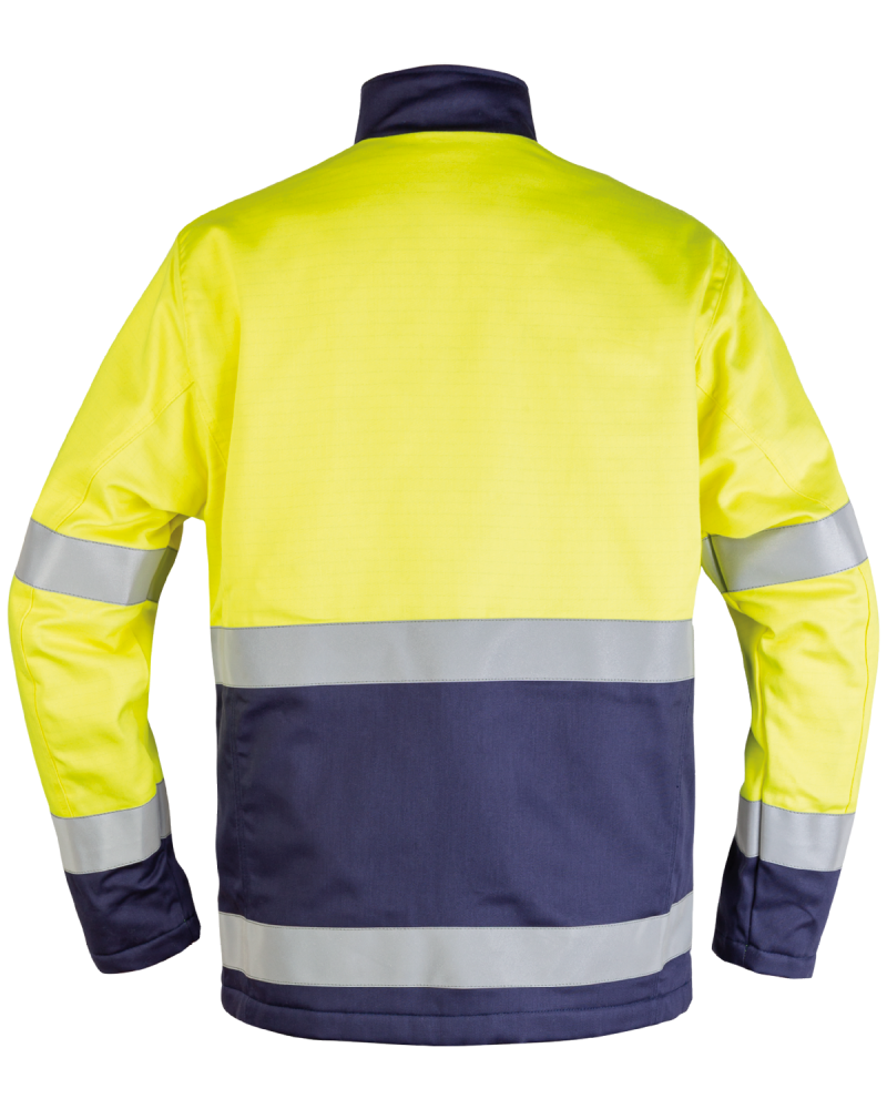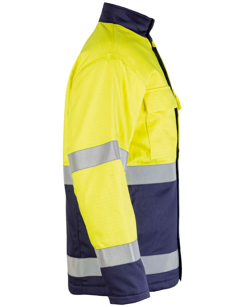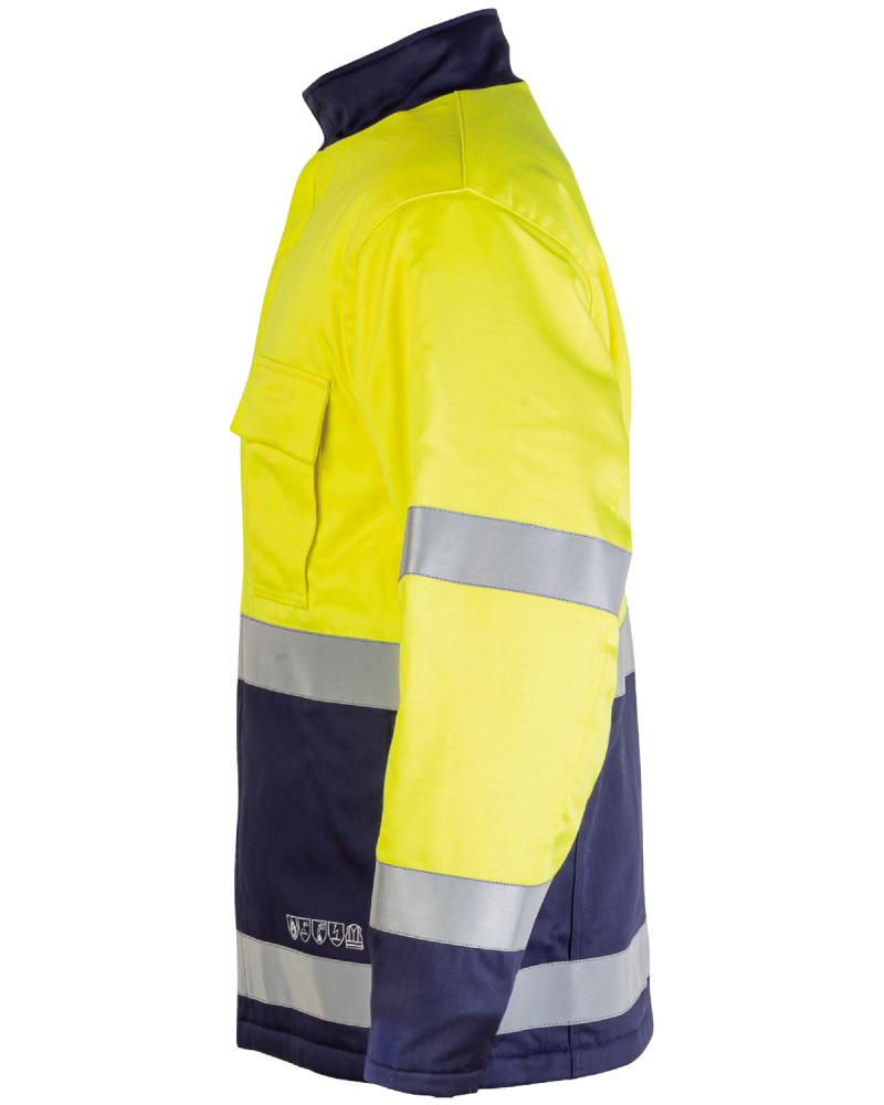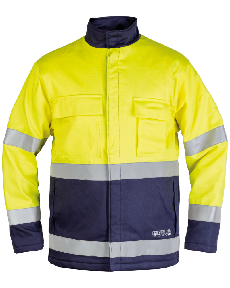 Kurtka ocieplana Hi-vis multiochronna, odblaskowa z firmowej kolekcji Protective gwarantuję bezpieczeństwo i ochronę użytkownika przed wieloma zagrożeniami występującymi jednocześnie w środowisku pracy: zapaleniem w wyniku krótkotrwałego kontaktu z płomieniem oraz oddziaływaniem czynników gorących, przed wyładowaniami iskrowymi mogącymi spowodować zapłon mieszanki wybuchowej oraz przed wyładowaniami elektrostatycznymi, przed przenikaniem ciepła konwekcyjnego, promieniowaniem cieplnym, rozpryskami stopionego żelaza, ciepłem kontaktowym oraz działaniem ciekłych chemikaliów, w przypadku ochlapania.