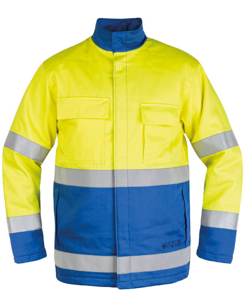 - Kurtka multiochronna: antyelektrostatyczna, trudnopalna, dla spawaczy, kwasoodporna. Materiał o intensywnej widzialności - Klasa 2.