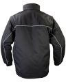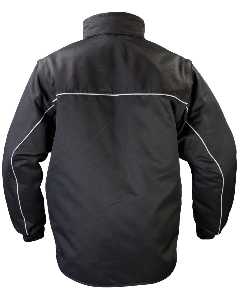 - Rękawy wykończone mankietem z gumą, odpinane na zamek, z tyłu element odblaskowy.
