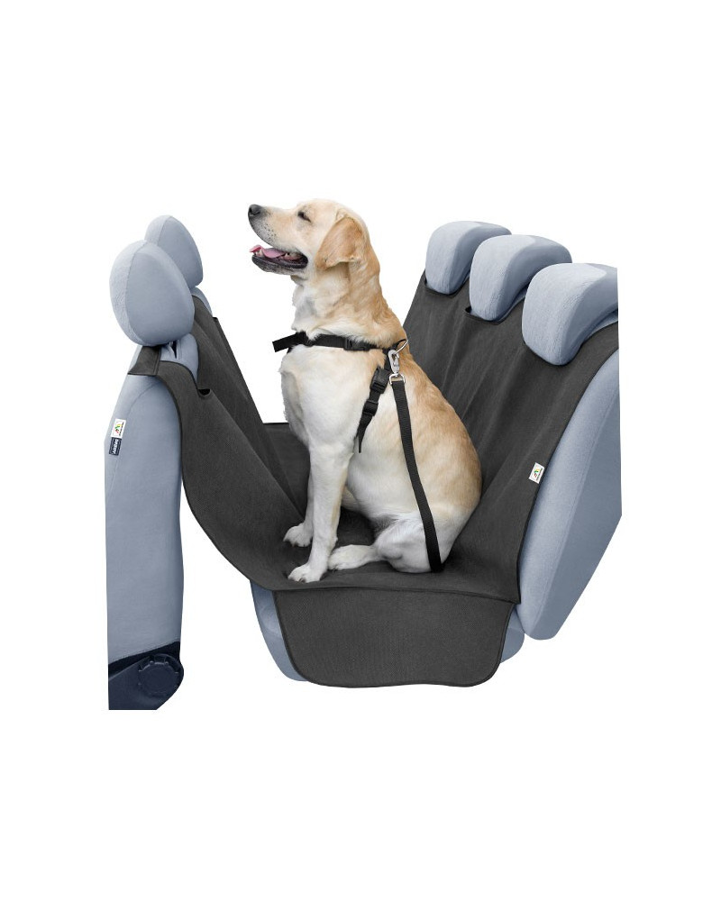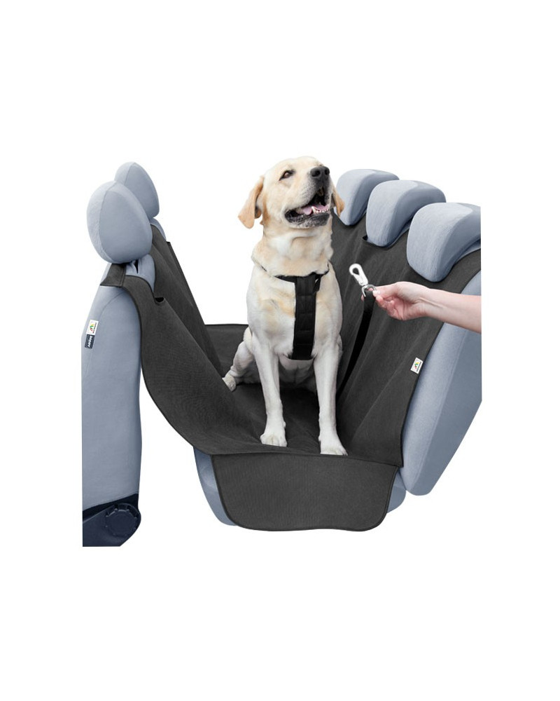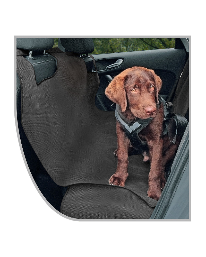 Jest to niezwykle praktyczny produkt, który chroni tapicerkę samochodu przed wszelkimi zanieczyszczeniami, zadrapaniami, uszkodzeniami , a także przed pozostawianą przez psa sierścią, która jest bardzo często trudna do usunięcia, gdyż wbija się do tapicerki. Pokrowiec jest wykonany z mocnej, trudnej do przebicia tkaniny, która jest antyalergiczna i bezzapachowa. Materiał jest trudno-przepuszczalny, co znaczy, że w bardzo dużym stopniu jest odporny na wchłanianie płynów i zapachów. Dzięki tej właściwości tapicerka samochodu jest naprawdę dobrze chroniona, a sam pokrowiec jest trudny do uszkodzenia. Duża powierzchnia pokrowca wraz z dwiema bocznymi osłonami ochroni zarówno tapicerkę kanapy jak i jej boki, które także narażone są na uszkodzenia, zwłaszcza podczas wchodzenia psa do samochodu. Pokrowiec dobrze dopasowuje się do siedzenia i układa się w pewnego rodzaju hamak, który chroni psa przed potłuczeniami i obrażeniami, na jakie narażony jest podczas podróży. Zasłonięcie przestrzeni pomiędzy przednimi fotelami skutecznie zniechęca psa do przeskakiwania na przednie fotele, co zapewnia bezpieczeństwo zarówno Twojemu pupilowi jak i Tobie. Ciemna kolorystyka pokrowca, sprawi, że produkt idealnie dopasuje się do wnętrza każdego samochodu.