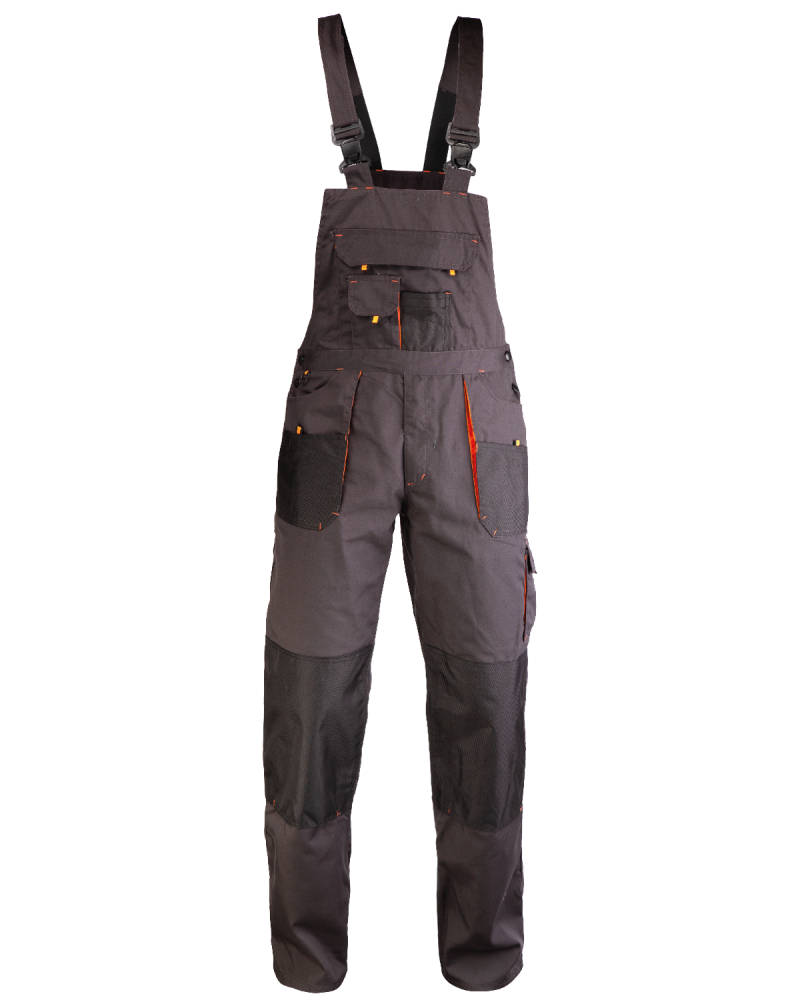 Ogrodniczki Kneiter z wielofunkcyjnymi kieszeniami (Grafit/Czerwony)