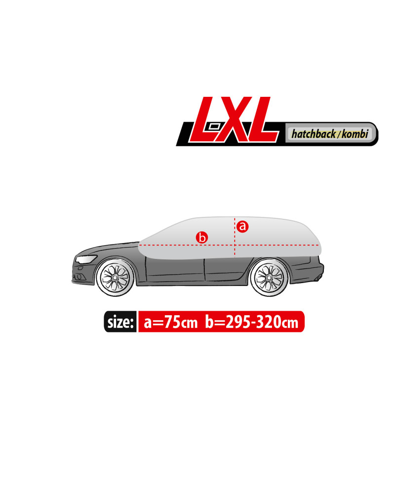 Instrukcja montażu: Założyć pokrowiec na czysty i suchy samochód. Przed założeniem pokrowca zaleca się złożyć lusterka oraz złożyć lub odkręcić antenę. Elastyczne pętle pokrowca zakończone bezpiecznymi hakami zahaczyć odpowiednio o felgi, dolną krawędź w środkowej części samochodu i o dolną krawędź tylnego zderzaka. W przypadku felg aluminiowych o grubych ramionach, przełożyć pętlę z hakiem przez ramię felgi i zahaczyć o część pętli powyżej.