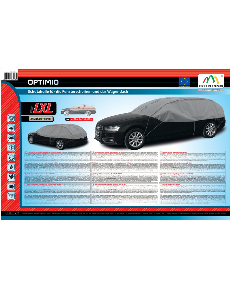 Półplandeki ochronne OPTIMIO, ochronią w zimie dach, szyby i lusterka zaparkowanego samochodu przed osadzającym się szronem i śniegiem. Osłonią klamki i zamki samochodu, zapobiegając ich zamarzaniu. Nie przymarzną do samochodu. Ochronią także przed sokami z drzew, ptasimi odchodami i osadzającymi się pyłami, a nawet promieniami UV. Dlatego możemy stosowac je o każdej porze roku.