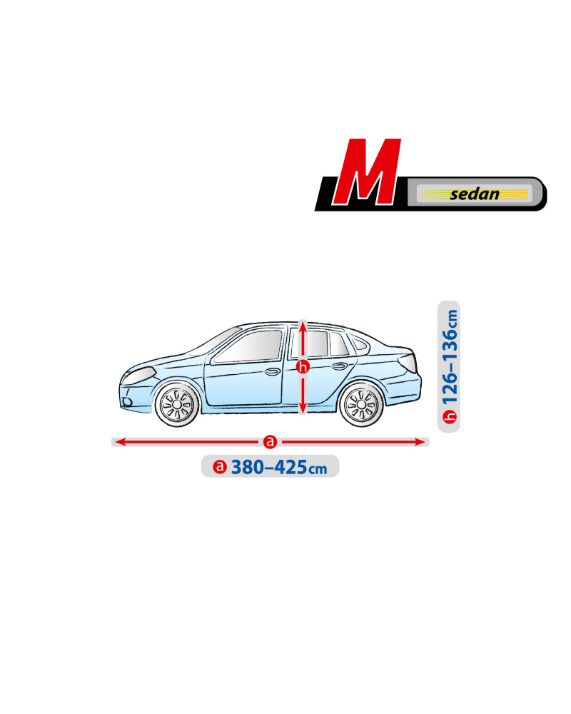 Materiał tekstylny, z którego wykonana jest plandeka dopasuje się zarówno do nieco mniejszego, jak i większego samochodu o podobnym kształcie i wymiarze nie przekraczającym podanego powyżej obwodu.