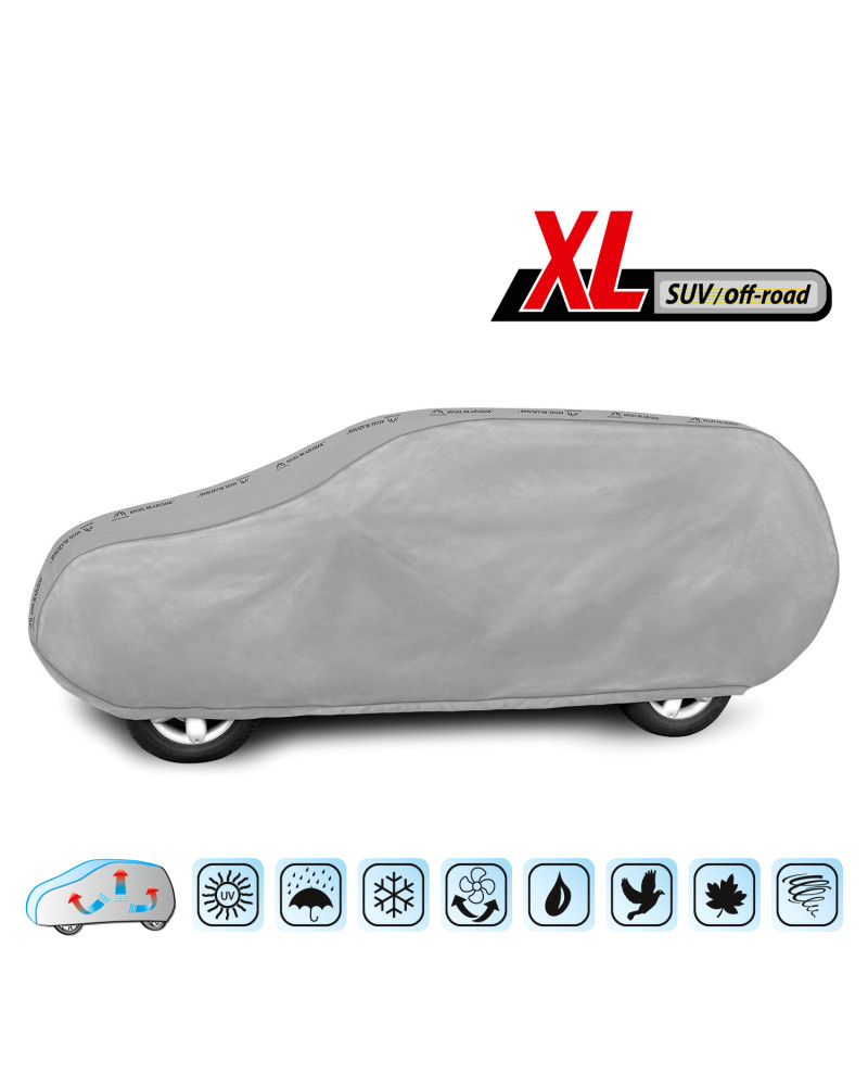 - zakrywa cały pojazd lekko zachodząc pod spód;