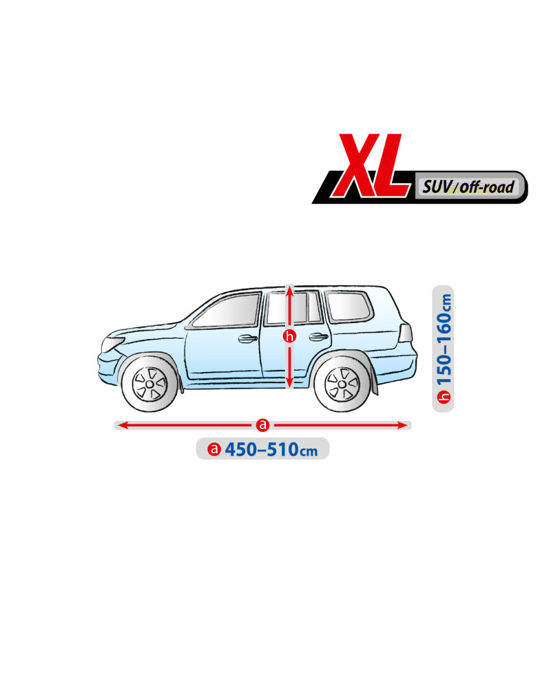 Materiał tekstylny, z którego wykonana jest plandeka dopasuje się zarówno do nieco mniejszego, jak i większego samochodu o podobnym kształcie i wymiarze nie przekraczającym podanego powyżej obwodu.