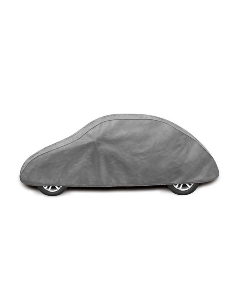 Materiał tekstylny, z którego wykonana jest plandeka dopasuje się zarówno do nieco mniejszego, jak i większego samochodu o podobnym kształcie i wymiarze nie przekraczającym podanego powyżej obwodu.