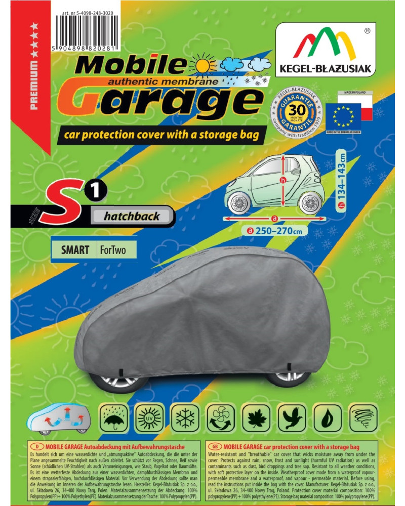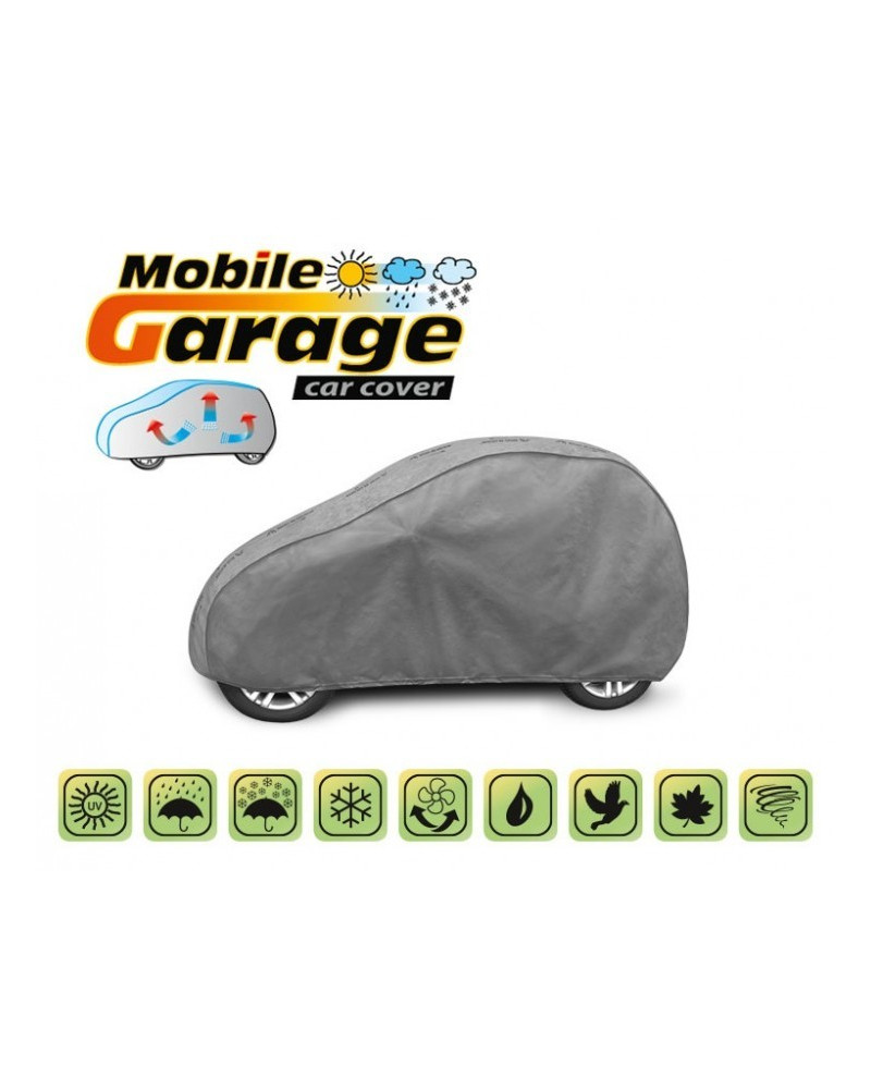 Wysokogatunkowy pokrowiec Mobile Garage to produkt dopasowany do potrzeb kierowców. Pokrowiec wykonany jest z aż 4-warstwowego materiału, który jest gruby, mocny i wytrzymały. Pokrowiec chroni cały samochód przed szkodliwym wpływem środowiska. Pokrowiec Mobile Garage to odpowiednia ochrona pojazdu przez cały rok. Jego funkcjonalność docenić można w każdej porze roku. W sezonie zimowym zapobiega osadzaniu się śniegu, szronu i lodu, a także jest odporny na przymarzanie; na jesieni chroni przed deszczem, wiatrem, liśćmi, sokami z drzew; zaś w porach letnich i wiosennych ochrania przed promieniami UV, pyłem i ptasimi odchodami.