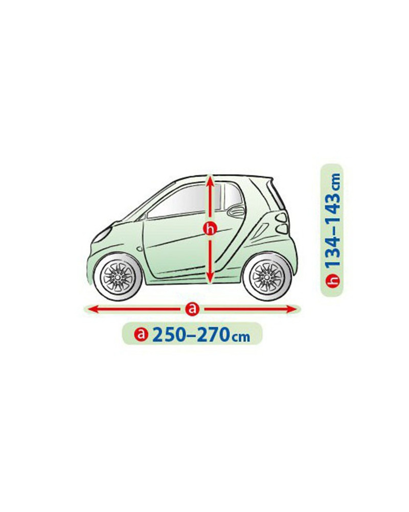 Materiał tekstylny, z którego wykonana jest plandeka dopasuje się zarówno do nieco mniejszego, jak i większego samochodu o podobnym kształcie i wymiarze nie przekraczającym podanego powyżej obwodu.