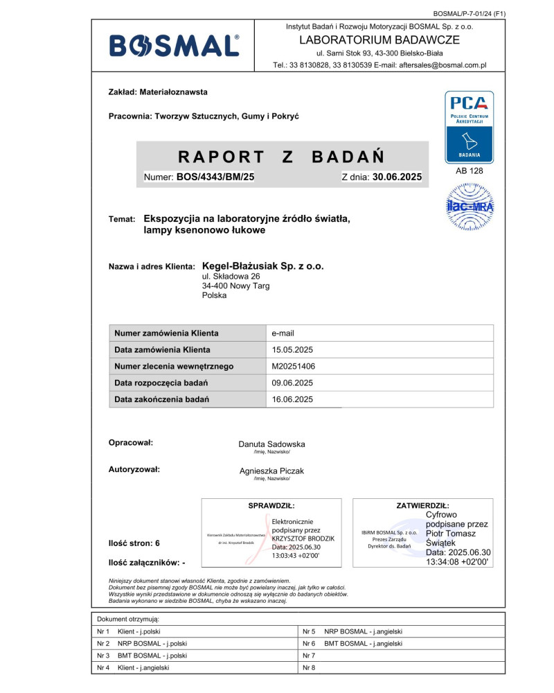 O trwałości pokrowców-plandek decyduje ich odporność na promieniowanie słoneczne (UV), wysokie temperatury, deszcz, mróz, śnieg i naturalne zabrudzenia. Nasi specjaliści opracowali skuteczne metody testowania odporności materiałów na warunki zewnętrzne na podstawie własnych wieloletnich testów środowiskowych i normy badawczej PN-EN ISO 4892-3. W komorze starzeniowej Atlas UVtest z USA wnikliwie badana jest każda dostawa materiałów z których produkowane są pokrowce-plandeki Kegel-Błażusiak. Dzięki kontroli jakości materiałów i długotrwałych testom środowiskowym gwarantujemy swoim klientom kilkuletnią trwałość naszych pokrowców-plandek nawet przy intensywnym użytkowaniu.