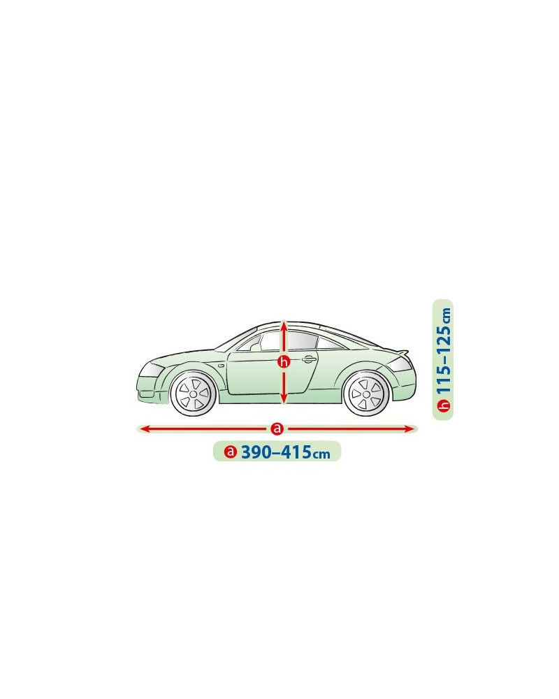 Materiał tekstylny, z którego wykonana jest plandeka dopasuje się zarówno do nieco mniejszego, jak i większego samochodu o podobnym kształcie i wymiarze nie przekraczającym podanego powyżej obwodu.