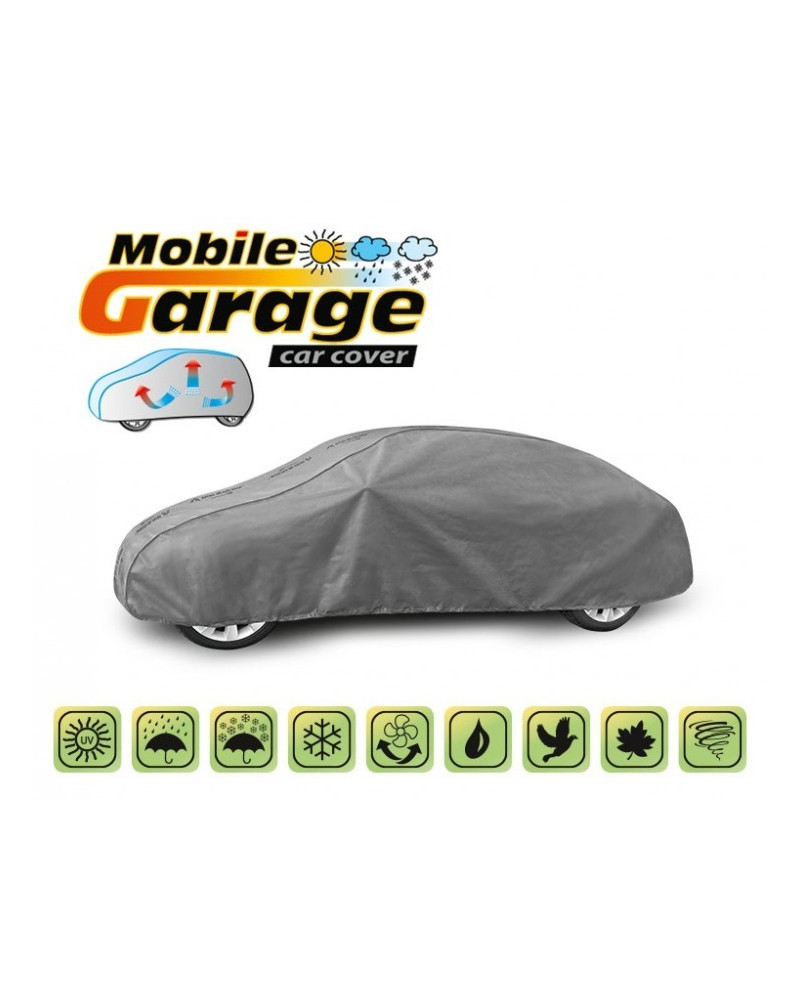 Wysokogatunkowy pokrowiec Mobile Garage to produkt dopasowany do potrzeb kierowców. Pokrowiec wykonany jest z aż 4-warstwowego materiału, który jest gruby, mocny i wytrzymały. Pokrowiec chroni cały samochód przed szkodliwym wpływem środowiska. Pokrowiec Mobile Garage to odpowiednia ochrona pojazdu przez cały rok. Jego funkcjonalność docenić można w każdej porze roku. W sezonie zimowym zapobiega osadzaniu się śniegu, szronu i lodu, a także jest odporny na przymarzanie; na jesieni chroni przed deszczem, wiatrem, liśćmi, sokami z drzew; zaś w porach letnich i wiosennych ochrania przed promieniami UV, pyłem i ptasimi odchodami.