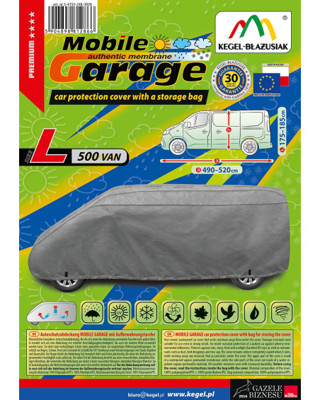 Wysokogatunkowy pokrowiec Mobile Garage to produkt dopasowany do potrzeb kierowców. Pokrowiec wykonany jest z aż 4-warstwowego materiału, który jest gruby, mocny i wytrzymały. Pokrowiec chroni cały samochód przed szkodliwym wpływem środowiska. Pokrowiec Mobile Garage to odpowiednia ochrona pojazdu przez cały rok. Jego funkcjonalność docenić można w każdej porze roku. W sezonie zimowym zapobiega osadzaniu się śniegu, szronu i lodu, a także jest odporny na przymarzanie; na jesieni chroni przed deszczem, wiatrem, liśćmi, sokami z drzew; zaś w porach letnich i wiosennych ochrania przed promieniami UV, pyłem i ptasimi odchodami.