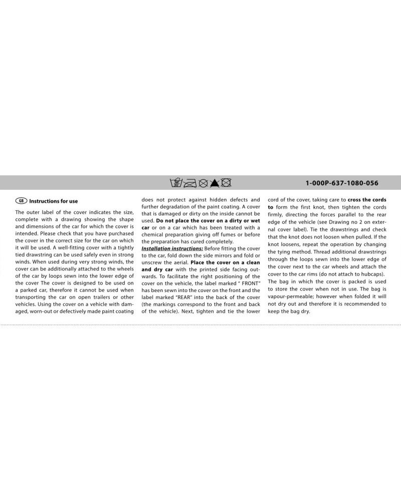 UWAGA! Pokrowiec zabrudzony od wewnętrznej strony nie powinien być używany. Pokrowiec do użytku tylko na zaparkowanym samochodzie - nie może być używany podczas transportu samochodu na lawecie.