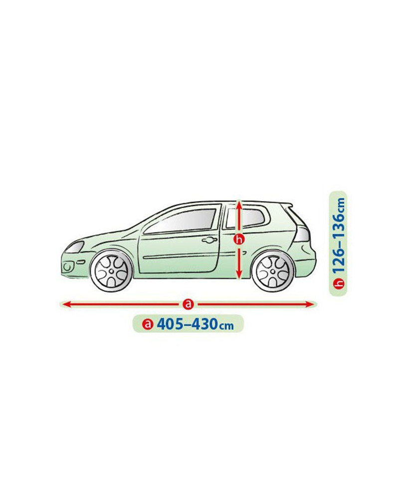 • Pasuje na pojazdy o wymiarach: długość 405-430 cm, maksymalny obwód 1156 cm