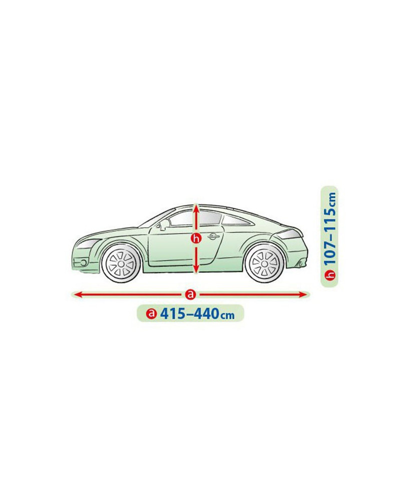 Materiał tekstylny, z którego wykonana jest plandeka dopasuje się zarówno do nieco mniejszego, jak i większego samochodu o podobnym kształcie i wymiarze nie przekraczającym podanego powyżej obwodu.