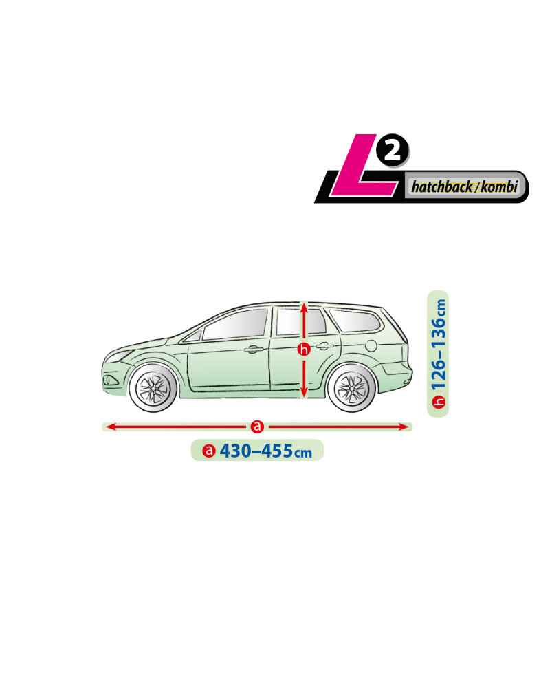 Materiał tekstylny, z którego wykonana jest plandeka dopasuje się zarówno do nieco mniejszego, jak i większego samochodu o podobnym kształcie i wymiarze nie przekraczającym podanego powyżej obwodu.