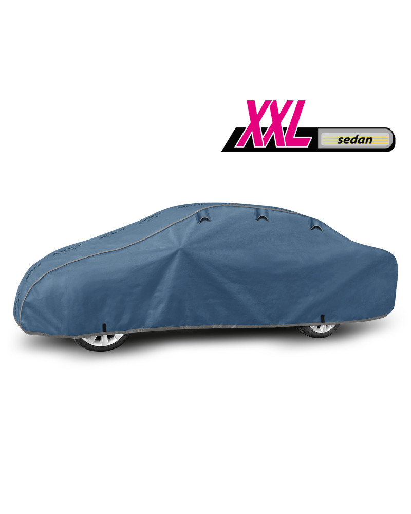 - zakrywa cały pojazd lekko zachodząc pod spód;