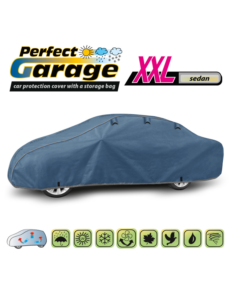 Wysokogatunkowy pokrowiec Mobile Garage to produkt dopasowany do potrzeb kierowców. Pokrowiec wykonany jest z aż 4-warstwowego materiału, który jest gruby, mocny i wytrzymały. Pokrowiec chroni cały samochód przed szkodliwym wpływem środowiska. Pokrowiec Mobile Garage to odpowiednia ochrona pojazdu przez cały rok. Jego funkcjonalność docenić można w każdej porze roku. W sezonie zimowym zapobiega osadzaniu się śniegu, szronu i lodu, a także jest odporny na przymarzanie; na jesieni chroni przed deszczem, wiatrem, liśćmi, sokami z drzew; zaś w porach letnich i wiosennych ochrania przed promieniami UV, pyłem i ptasimi odchodami.