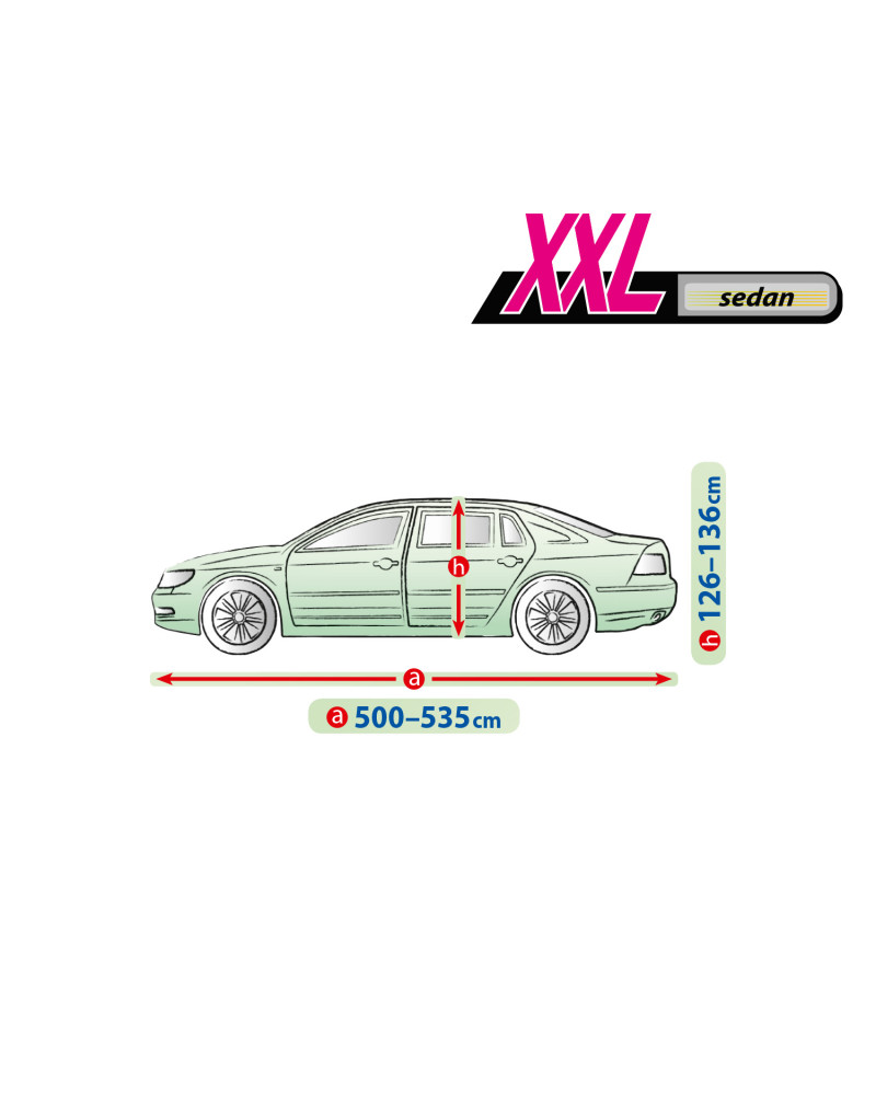 • Pasuje na pojazdy o wymiarach: długość 500-535 cm, maksymalny obwód 1336 cm