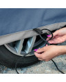 Góra pokrowca jest nieprzemakalna i paroprzepuszczalna. Nie przemaka, jednocześnie odprowadzając wilgoć spod pokrowca. Gładki SPUNBOND od wewnątrz, nie rysuje pojazdu.