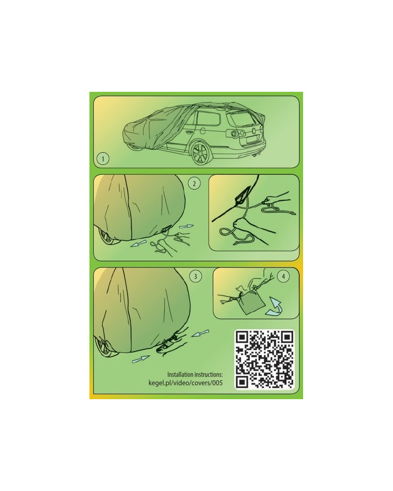 - Pokrowiec założyć na czysty samochód stroną pokrowca z nadrukiem na zewnątrz.