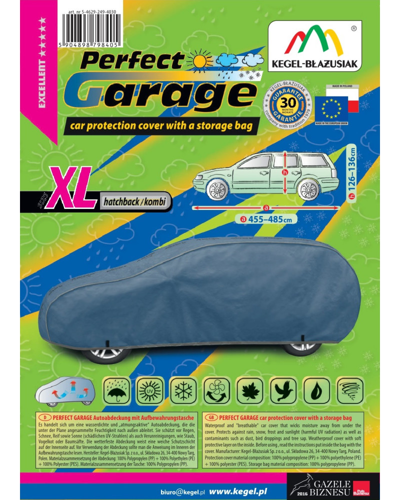Niezwykłe własciwości wielowarstwowego materiału sprawiają, że pokrowiec nie przemaka, przy jednoczesnym odprowadzaniu pary wodnej spod pokrowca na zewnątrz. Każda oznaka wilgoci, która zgromadzi się pod pokrowcem szybko wyparuje, co pozwoli uniknąć rdzewieniu samochodu oraz powstawaniu pleśni. Pokrowiec przystosowany jest zarówno do doraźnego jak i długotrwałego stosowania. Pokrowiec można prać ręcznie w temperaturze 40 stopni. Pokrowiec ma kolor popielaty, który jest niezwykle praktyczny a zarazem świetnie się prezentuje. Przez środek pokrowca biegnie napis przedstawiający nazwę producenta i logo firmy oraz nazwę materiału z którego został zrobiony- da Ci to gwarancję oryginalności i wysokiej jakości produktu. Różnorodność kształtów i rozmiarów sprawia, że możesz wybrać pokrowiec, który dobrze dopasuje się do Twojego samochodu.