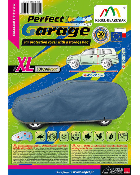 Wysokogatunkowy pokrowiec Mobile Garage to produkt dopasowany do potrzeb kierowców. Pokrowiec wykonany jest z aż 4-warstwowego materiału, który jest gruby, mocny i wytrzymały. Pokrowiec chroni cały samochód przed szkodliwym wpływem środowiska. Pokrowiec Mobile Garage to odpowiednia ochrona pojazdu przez cały rok. Jego funkcjonalność docenić można w każdej porze roku. W sezonie zimowym zapobiega osadzaniu się śniegu, szronu i lodu, a także jest odporny na przymarzanie; na jesieni chroni przed deszczem, wiatrem, liśćmi, sokami z drzew; zaś w porach letnich i wiosennych ochrania przed promieniami UV, pyłem i ptasimi odchodami.