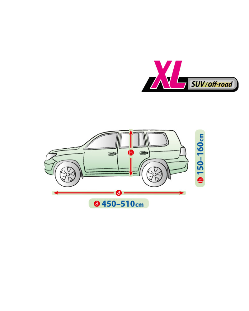 • Pasuje na pojazdy o wymiarach: długość 450-510 cm, maksymalny obwód 1316 cm