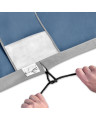 3. Pokrowiec w rogach nad ściągaczem mocującym ma wszyte dodatkowe elastyczne pasy mocujące, które podczas zakładania zahaczą się o krawędź zderzaka.