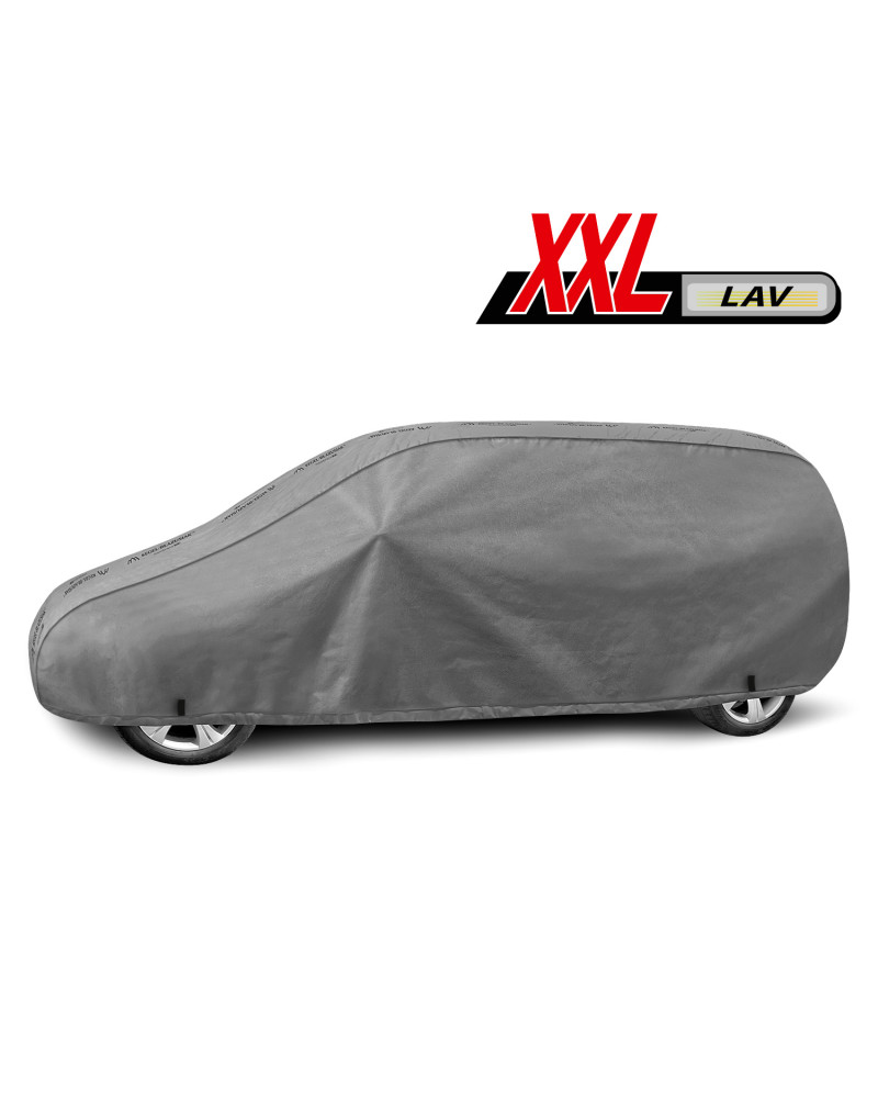 - zakrywa cały pojazd lekko zachodząc pod spód;