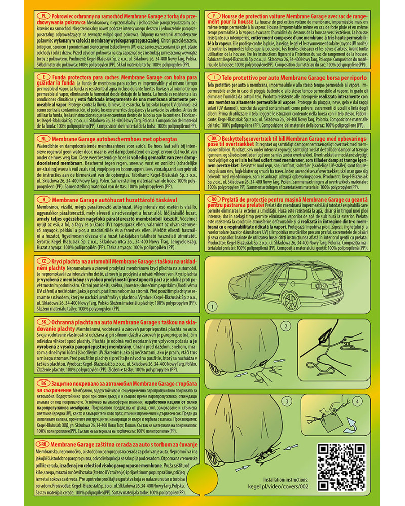 Góra pokrowca jest nieprzemakalna i paroprzepuszczalna. Nie przemaka, jednocześnie odprowadzając wilgoć spod pokrowca. Gładki SPUNBOND od wewnątrz, nie rysuje pojazdu.