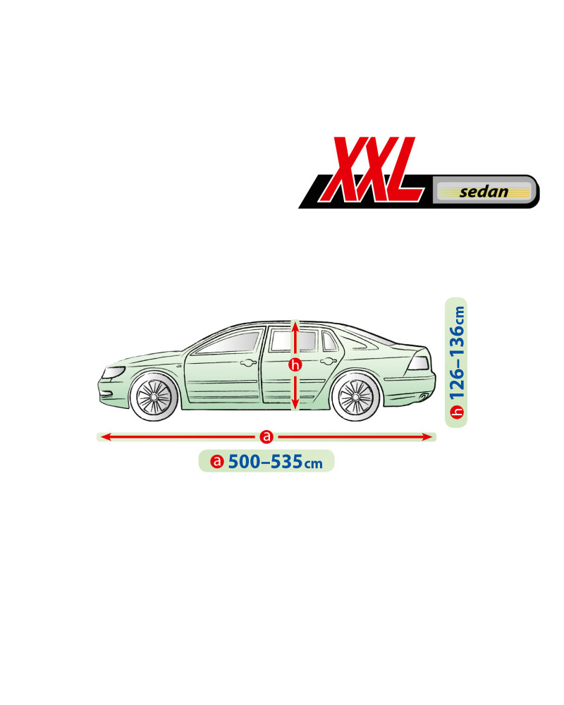 Materiał tekstylny, z którego wykonana jest plandeka dopasuje się zarówno do nieco mniejszego, jak i większego samochodu o podobnym kształcie i wymiarze nie przekraczającym podanego powyżej obwodu.