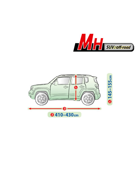 Materiał tekstylny, z którego wykonana jest plandeka dopasuje się zarówno do nieco mniejszego, jak i większego samochodu o podobnym kształcie i wymiarze nie przekraczającym podanego powyżej obwodu.