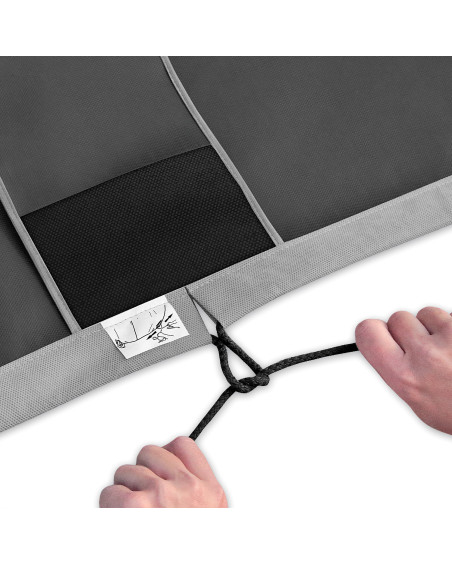 2.Następnie maksymalnie mocno zaciągnąć linkę ściągacza pokrowca i pewnie ją zawiązać.