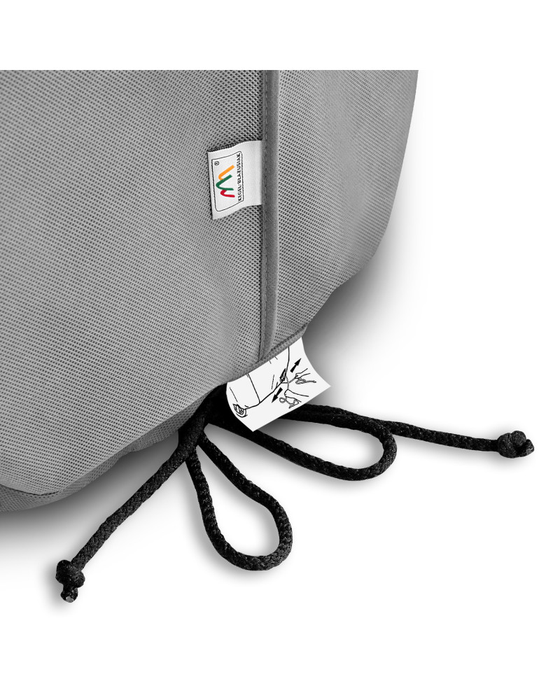 Pokrowiec został zrobiony z mocnego, trudno przemakalnego ortalionu - praktycznego materiału, charakteryzującego się długą żywotnością. Materiał w kolorze czarnym, charakteryzuje się niemal 100% trwałością barw. Ciemny, praktyczny kolor sprawia, że zabrudzenia pokrowca są niemalże niewidoczne. Pokrowiec idealnie komponuje się z każdym wnętrzem i pasuje do niemalże każdego samochodu. Do materiału wszyta jest specjalna kieszonka na kartę opisową opony/ koła, która jest nie raz bardzo przydatna.
