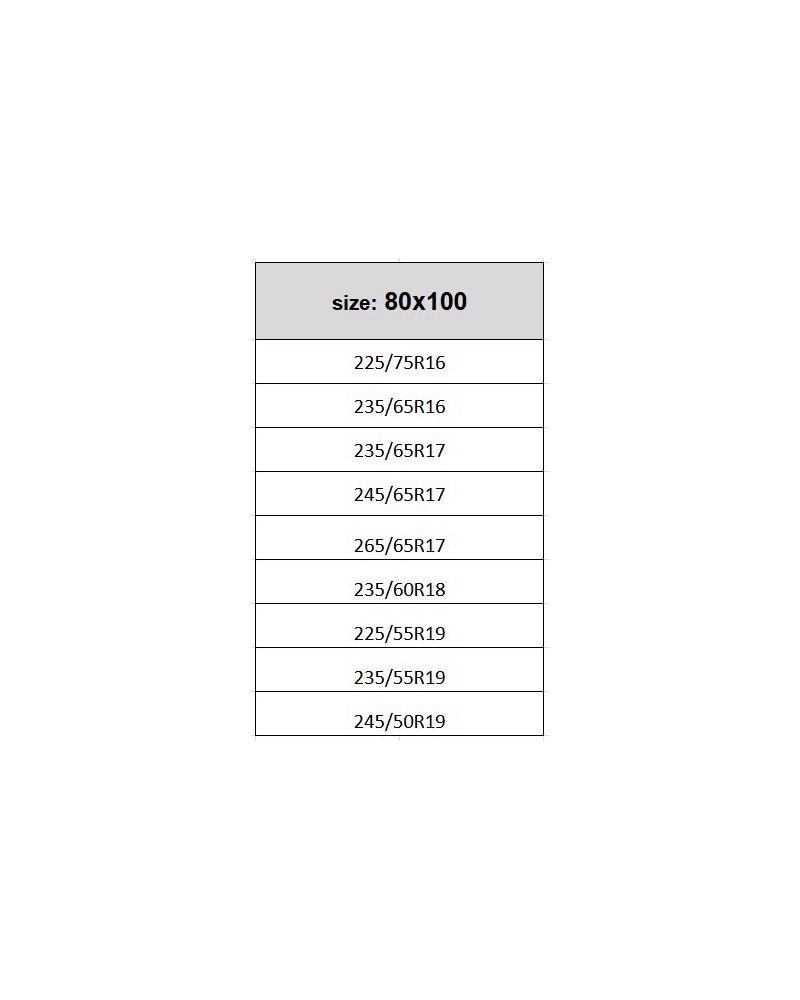 Pasuje na opony o rozmiarze: 175/70-R14, 175/80-R14, 185/60-R14, 185/65-R14, 185/70-R14, 195/60-R14, 195/65-R14, 205/65-R14, 185/55-R15, 185/60-R15, 185/65-R15, 195/50-R15, 195/55-R15, 195/60-R15, 195/65-R15, 195/70-R15, 205/55-R15, 205/65-R15, 195/50-R16, 195/65-R16, 205/55-R16, 225/45-R17