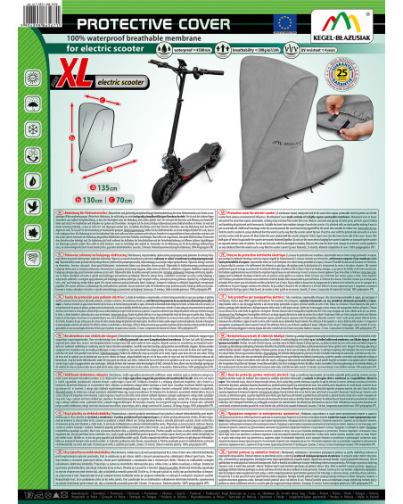 Wysokiej klasy pokrowce na skuter BASIC GARAGE, dla wielbicieli jednośladów- wodoodporne i paroprzepuszczalne. Wykonane z trzywarstwowej, nieprzemakalnej membrany paroprzepuszczalnej, która zapewnia prawidłową cyrkulację powietrza wewnątrz pokrowców. Materiał zachowuje niemalże całkowitą szczelność, przy jednoczesnym zapewnieniu odpowiedniego przepływu powietrza, umożliwiającego odprowadzanie wilgoci, gromadzącej się pod pokrowcem a w konsekwencji przeciwdziała powstawaniu korozji. Pokrowce ochronią cały skuter wraz z jego dolną częścią przed szkodliwym wpływem środowiska. Są odporne na działanie promieni UV. Mocowane za pomocą ściągacza z linką wokół całego pojazdu, prawidłowo zawiązane, zapewniają bezpieczeństwo nawet podczas porywistego wiatru. Dzięki trzem wersją rozmiarowym, pokrowce są dobrze dopasowane do różnych rodzajów i wielkości skuterów. Udzielana na 25-miesięcy gwarancja da Ci pewność, że kupujesz produkt najwyższej jakości.