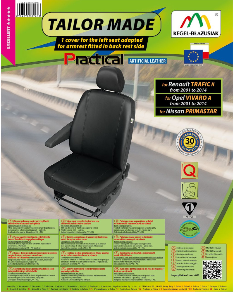 Nieprzemakalny, niebrudzący i niezwykle wytrzymały materiał zapewnia praktyczny użytek. Oferta skierowana do właścicieli konkretnych samochodów dostawczych i mikrobusów, którzy chcą zadbać o wnętrze swoich pojazdów oraz dodać im szyku i elegancji. Czarna, uniwersalna kolorystyka idealnie dopasowuje się do wnętrza każdego pojazdu. Pokrowce świetnie prezentują się w każdym samochodzie. Są wyjątkowo eleganckie, dlatego też dzięki nim każde wnętrze nabierze klasy i wdzięku. Pokrowce wyposażone są w niezbędne, zapinane otwory umożliwiające założenie pokrowca bez konieczności wyciągania zagłówków i wykonywania dodatkowych otworów. Konstrukcja pokrowca umożliwia też założenie pokrowca na fotel z podłokietnikiem, jeżeli fotel taki posiada. Komplet wyposażony jest w specjalne klamerki montażowe, a do materiału wszyte są mocowania, dlatego tez bardzo łatwo go założyć. Wszelkie zabrudzenia pokrowca, są bardzo łatwe do usunięcia- wystarczy przetrzeć je wilgotną ścierką. Produkt renomowanej firmy Kegel-Błażusiak. Największego producenta i eksportera w branży pokrowców samochodowych i odzieży roboczej. Lata doświadczenia i coraz bardziej doskonały asortyment sprawiają, że pokrowce tejże marki można określić mianem najlepszych w Polsce. Produkowany w Polsce, głównie z polskich surowców z zachowaniem wszystkich standardów jakościowych Unii Europejskiej. Kupując pokrowce Kegel-Błażusiak wspierasz polską gospodarkę i chronisz polskie miejsca pracy.