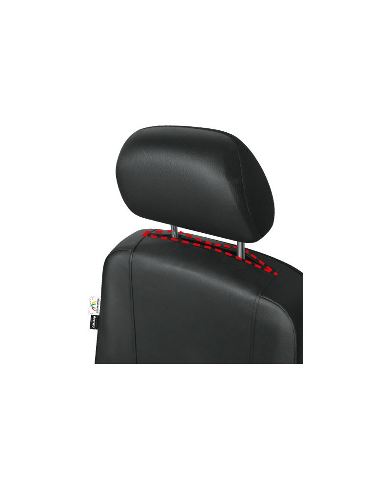 - Wyposażony w niezbędne otwory, umożliwiające założenie pokrowca bez konieczności wyciągania zagłówków i robienia dodatkowych przeszyć.