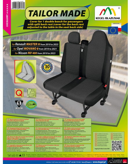 Pokrowce miarowe ARES zostały zaprojektowane z myślą o właścicielach konkretnych modeli samochodów dostawczych, chcących zadbać o wnętrza swoich pojazdów- dodać im klasy i elegancji oraz ochronić tapicerkę przed wszelkiego rodzaju zabrudzeniami i uszkodzeniami. Dzięki odpowiedniej budowie, materiał dobrze dopasowuje się do siedzenia, a podlaminowanie po wewnętrznej stronie pianką PUR, zapobiega przesuwaniu pokrowca. Pokrowce ARES spełniają najwyższe normy wytrzymałościowe. Profesjonalne wykonanie z materiałów wysokiej jakości gwarantuje długi czas użytkowania. Oferowane pokrowce z pewnością zaspokoją oczekiwania nawet najbardziej wymagających klientów. Udzielana na 25-miesięcy gwarancja da Ci pewność, że kupujesz produkt najwyższej jakości.