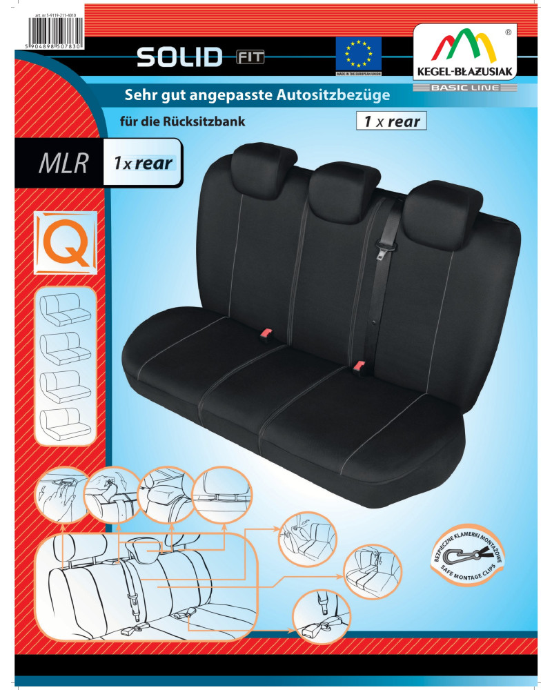 Pokrowce SOLID oferujemy w bardzo atrakcyjnej cenie. Warto jednak wspomnieć, że jakością wykonania w niczym nie ustępują modelom droższym. Są to najbardziej funkcjonalne i dopasowane pokrowce samochodowe, dostępne na rynku polskim w tej klasie cenowej. Zostały starannie zaprojektowane i wszechstronnie przetestowane, dlatego pasują na konkretne siedzenia samochodów, niemal tak, jak pokrowce miarowe - dobrze dopasowują się do foteli i kanap, oddając większość ich detali. Wszystkie elementy konstrukcyjne zostały starannie przygotowane i dobrze wykończone. Dzięki zapinanym na rzep rozcięciom, umożliwiającym założenie ich, bez konieczności wyciągania zagłówków, bardzo łatwo można je założyć. Komplet wyposażony jest w specjalne klamerki, a do materiału wszyte są mocowania, co przy pomocy dołączonej obrazkowej instrukcji obsługi zapewnia bardzo łatwy montaż.