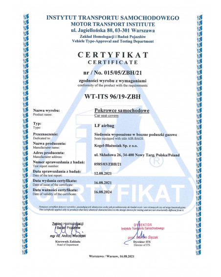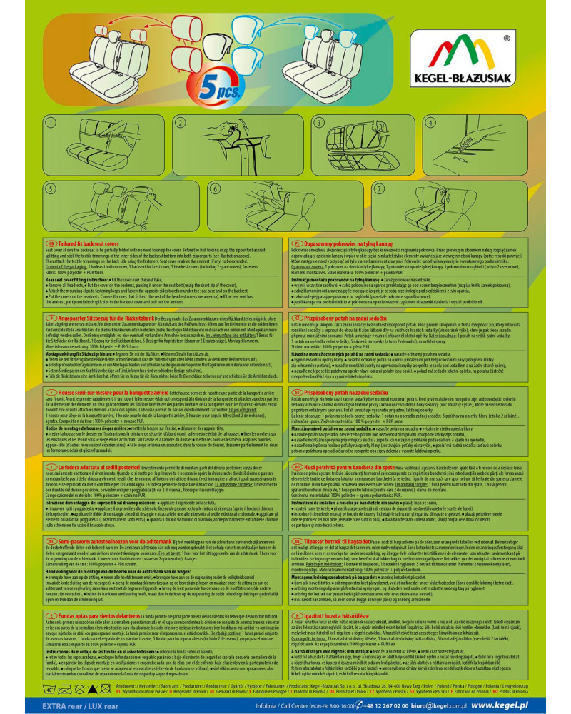 Pokrowce łatwo utrzymać w czystości, gdyż można je wyprać zgodnie z informacją na metce- w temperaturze 40°. Komplet wyposażony jest w specjalne klamerki, a do materiału wszyte są mocowania, co przy pomocy dołączonej obrazkowej instrukcji obsługi zapewnia bardzo łatwy montaż. Pokrowce bardzo dobrze chronią oryginalne poszycie tapicerki przed wszelkiego rodzaju zabrudzeniami i większością uszkodzeń, gdyż materiał wykonania jest niezwykle mocny i wytrzymały odporny na przecieranie i rozrywanie. Elegancka, klasyczna kolorystyka, bardzo dobrze prezentuje się we wnętrzu każdego pojazdu. Jeżeli chcesz odświeżyć wnętrze Twojego samochodu, jeżeli chcesz dodać mu szyku i elegancji- trafiłeś na odpowiedni produkt. Produkt znanej i niezwykle cenionej w branży pokrowców samochodowych i odzieży roboczej firmy Kegel-Błażusiak. Produkowany w Polsce, głównie z polskich surowców z zachowaniem wszystkich standardów jakościowych Unii Europejskiej. Lata doświadczenia i coraz bardziej doskonały asortyment sprawia, że pokrowce tejże marki można określić mianem najlepszych w Polsce. Pokrowiec POSEIDON mimo zastosowania drogich, wysokiej jakości materiałów oferujemy w bardzo atrakcyjnej cenie.