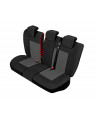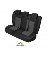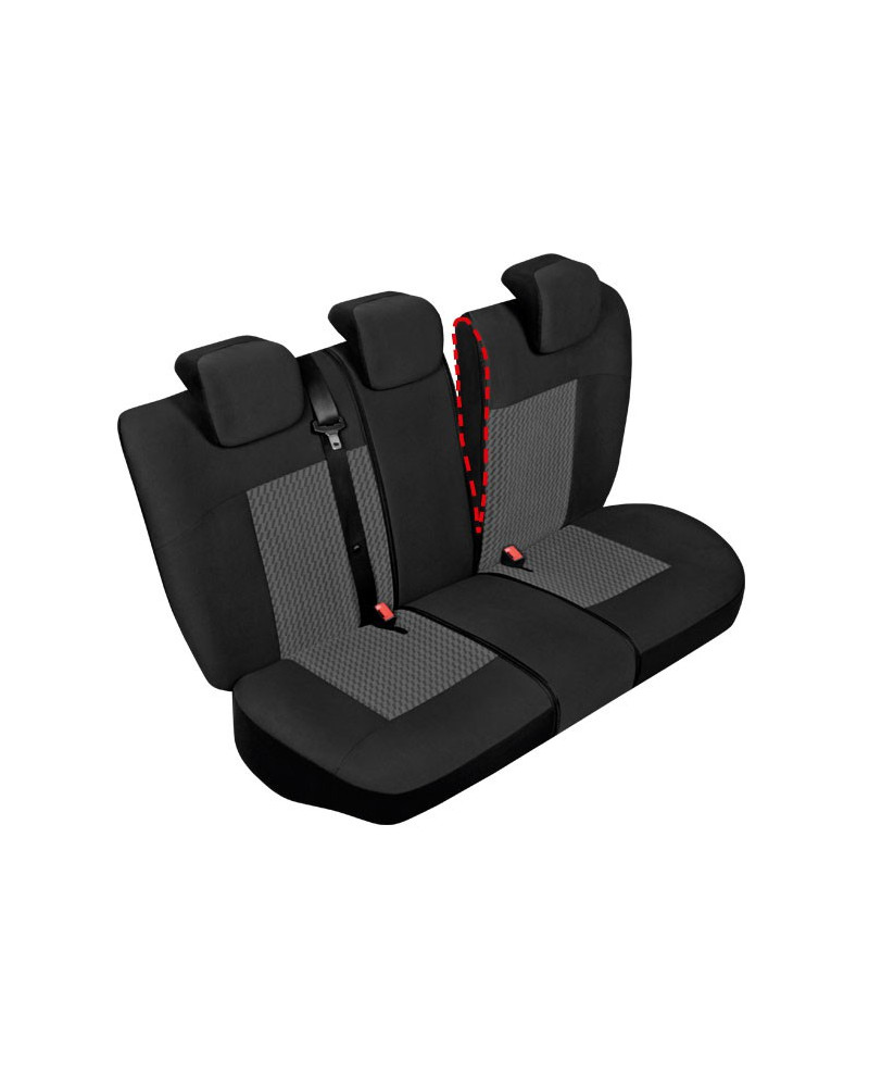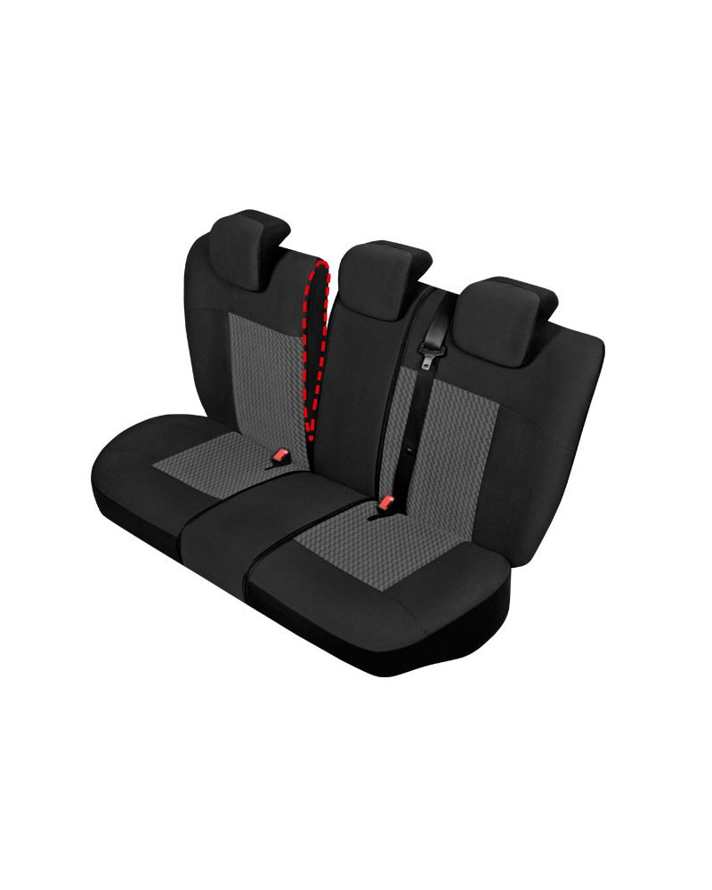 Przy produkcji pokrowców został zastosowany system dzielenia tylnej kanapy, umożliwiający złożenie jej, bez konieczności rozpinania pokrowca, trwałe jej dzielenie w proporcjach 1/3 i 2/3 lub 2/3 i 1/3 oraz rozłożenie podłokietnika w środkowej części kanapy. Dzieje się to za sprawą dodatkowych elementów- pokryć boków, które są łączone z główną częścią materiału za pomocą suwaków. Pokrowce wyposażone są w elegancko wykończone otwory pod zagłówki, otwory pod wszystkie pasy bezpieczeństwa (także trzeci, środkowy) oraz gniazda pasów Do pokrowca na tylną kanapę dołączone jest pięć pokrowców na zagłówki – 2 pokrowce na zagłówki o klasycznym kształcie i 3 pokrowce na zagłówki „płaskie”. Klient wybiera 3 odpowiednie do jego samochodu, a 2 pozostawia sobie w zapasie.