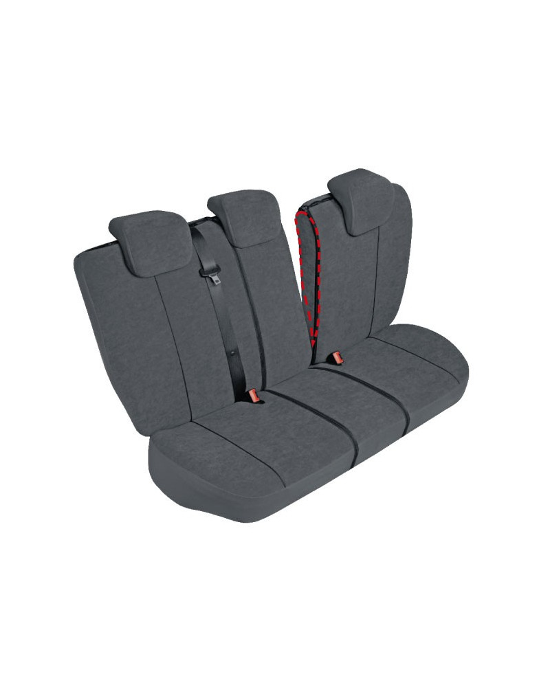 Przy produkcji pokrowców został zastosowany system dzielenia tylnej kanapy, umożliwiający złożenie jej, bez konieczności rozpinania pokrowca, trwałe jej dzielenie w proporcjach 1/3 i 2/3 lub 2/3 i 1/3 oraz rozłożenie podłokietnika w środkowej części kanapy. Dzieje się to za sprawą dodatkowych elementów- pokryć boków, które są łączone z główną częścią materiału za pomocą suwaków. Pokrowce wyposażone są w elegancko wykończone otwory pod zagłówki, otwory pod wszystkie pasy bezpieczeństwa (także trzeci, środkowy) oraz gniazda pasów Do pokrowca na tylną kanapę dołączone jest pięć pokrowców na zagłówki – 2 pokrowce na zagłówki o klasycznym kształcie i 3 pokrowce na zagłówki „płaskie”. Klient wybiera 3 odpowiednie do jego samochodu, a 2 pozostawia sobie w zapasie.