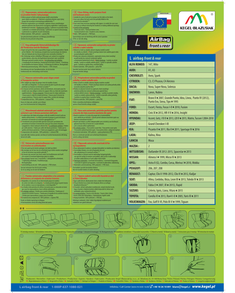 - Przystosowane do foteli wyposażonych w boczne poduszki powietrzne AirBag - gwarancja bezpieczeństwa potwierdzona certyfikatam PIMOT
