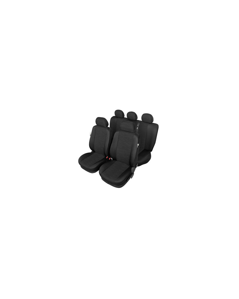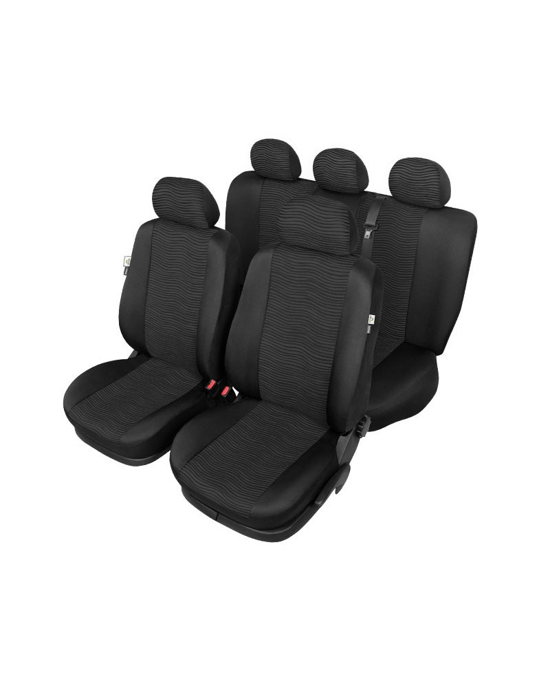 - Elegancka kolorystyka- czerń, z delikatnym falowanym wzorem w środkowych częściach pokrowców